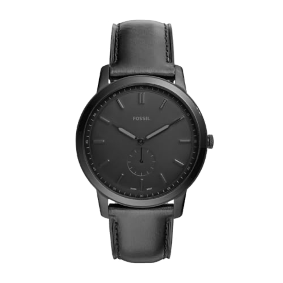 Fossil Men’s Minimalist Quartz Stainless Steel and Leather Three-Hand Watch