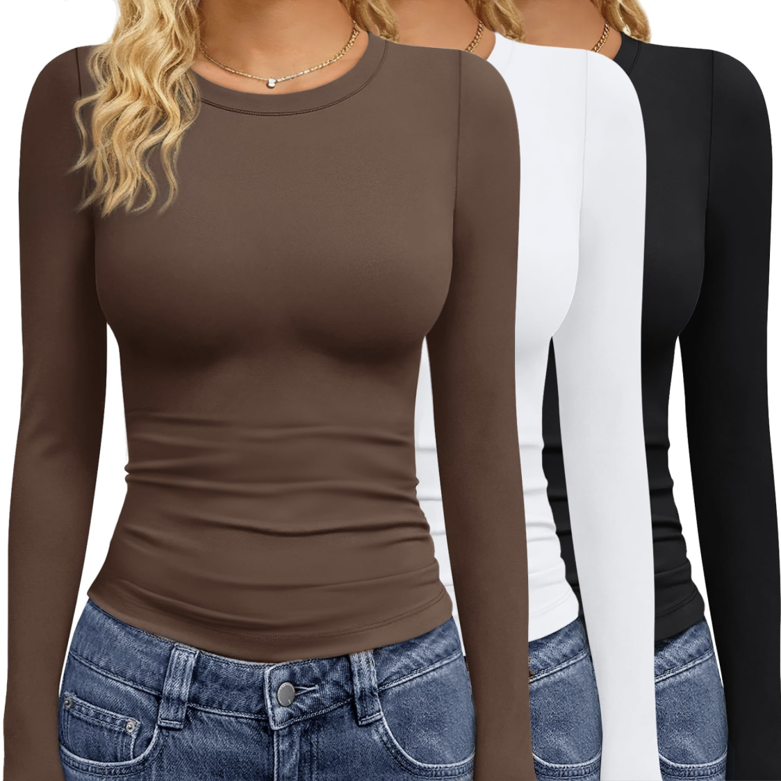 GAYHAY 3 Pack Long Sleeve Shirts for Women Basic Tops Crew Neck Fitted Tight Workout Tees Y2K Clothes Going Out Fashion 2025