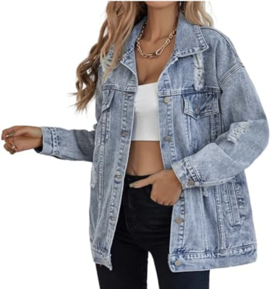 LifeShe Women’s long oversized denim jacket boyfriend ripped distressed jean jackets coat