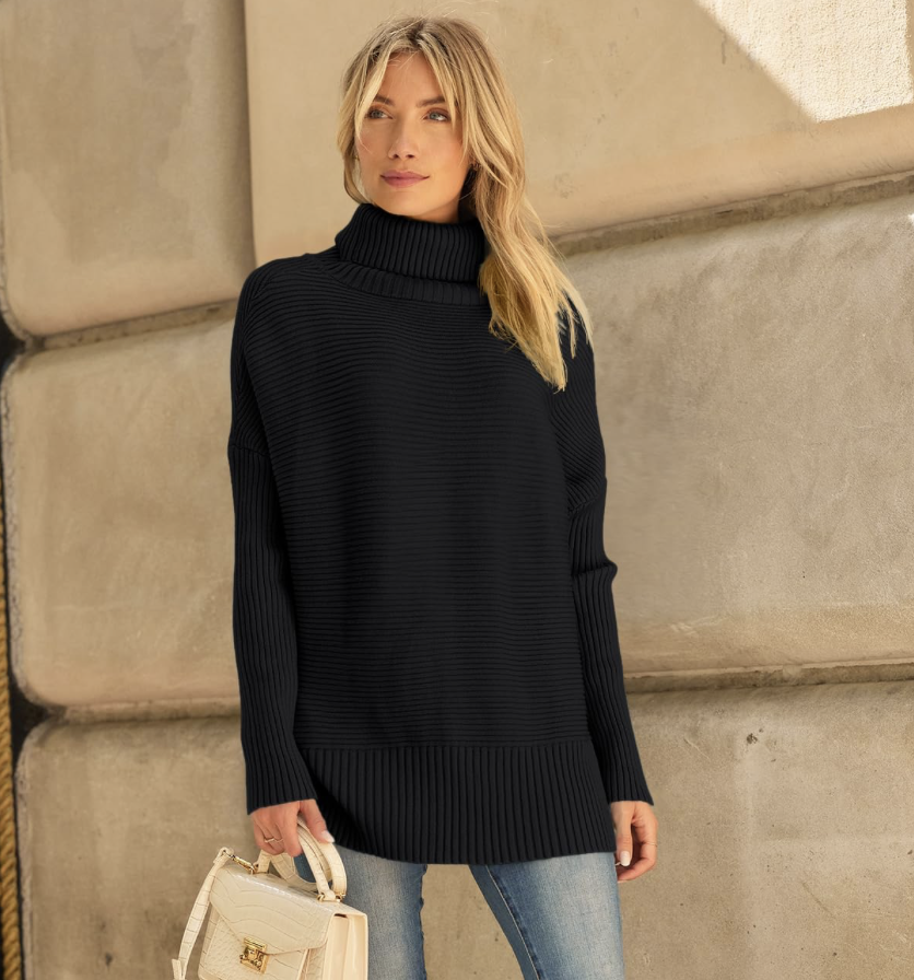 LILLUSORY Women’s Oversized Turtleneck Sweaters Fall Batwing Sleeve Ribbed Tunic Sweater