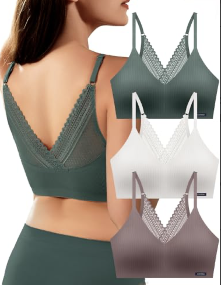 Livona Lace Bralette for Women – Comfort Sports Bra Wireless Padded Bralette with Support Workout Tops Cami Crop S-XXL