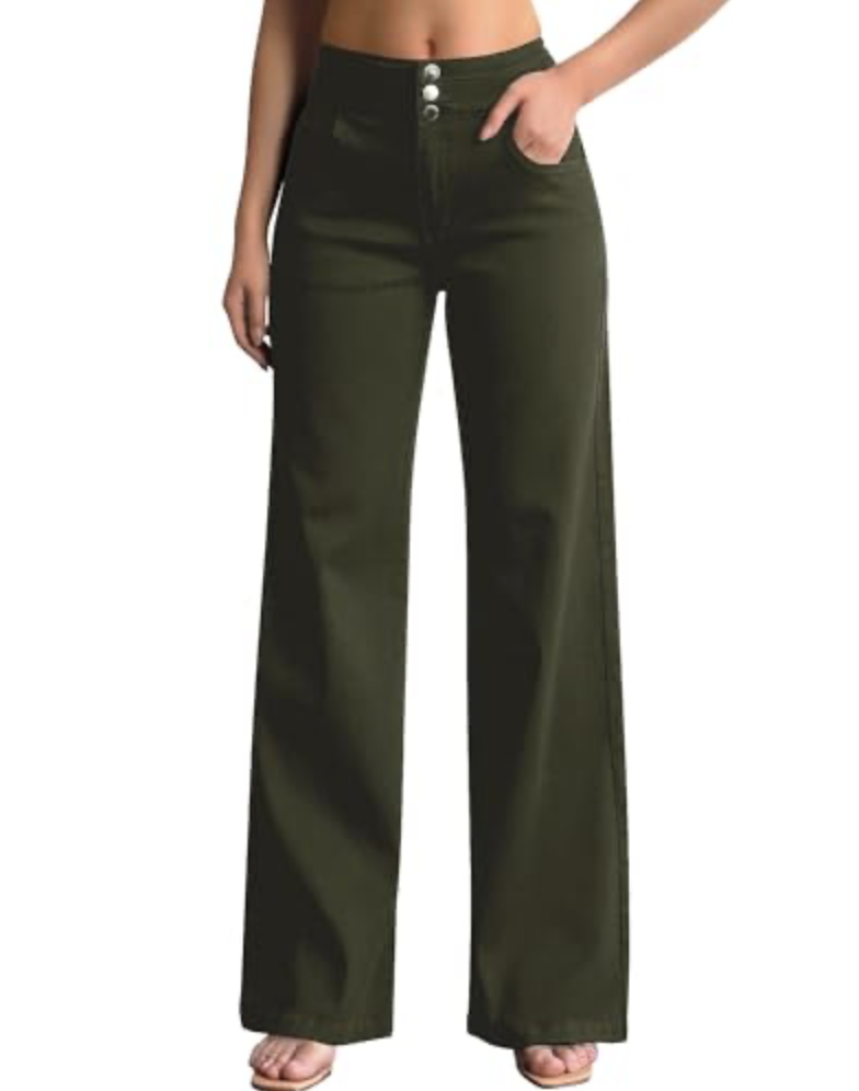 roswear Women’s Wide Leg Jeans Casual High Waisted Stretch Baggy Loose Denim Pants