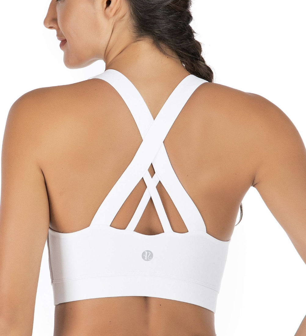 RUNNING GIRL Sports Bra for Women, Criss-Cross Back Padded Strappy Sports Bras Medium Support Yoga Bra with Removable Cups