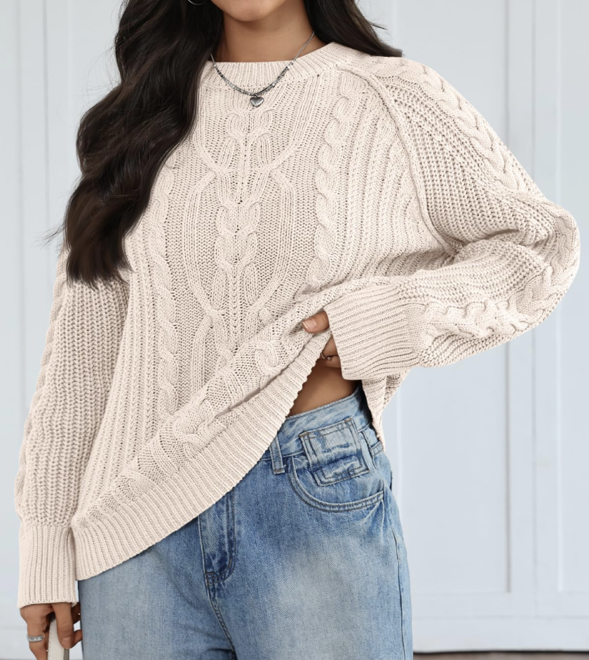 Trendy Queen Women’s Oversized Cable Knit Crewneck Fall Pullover Sweaters